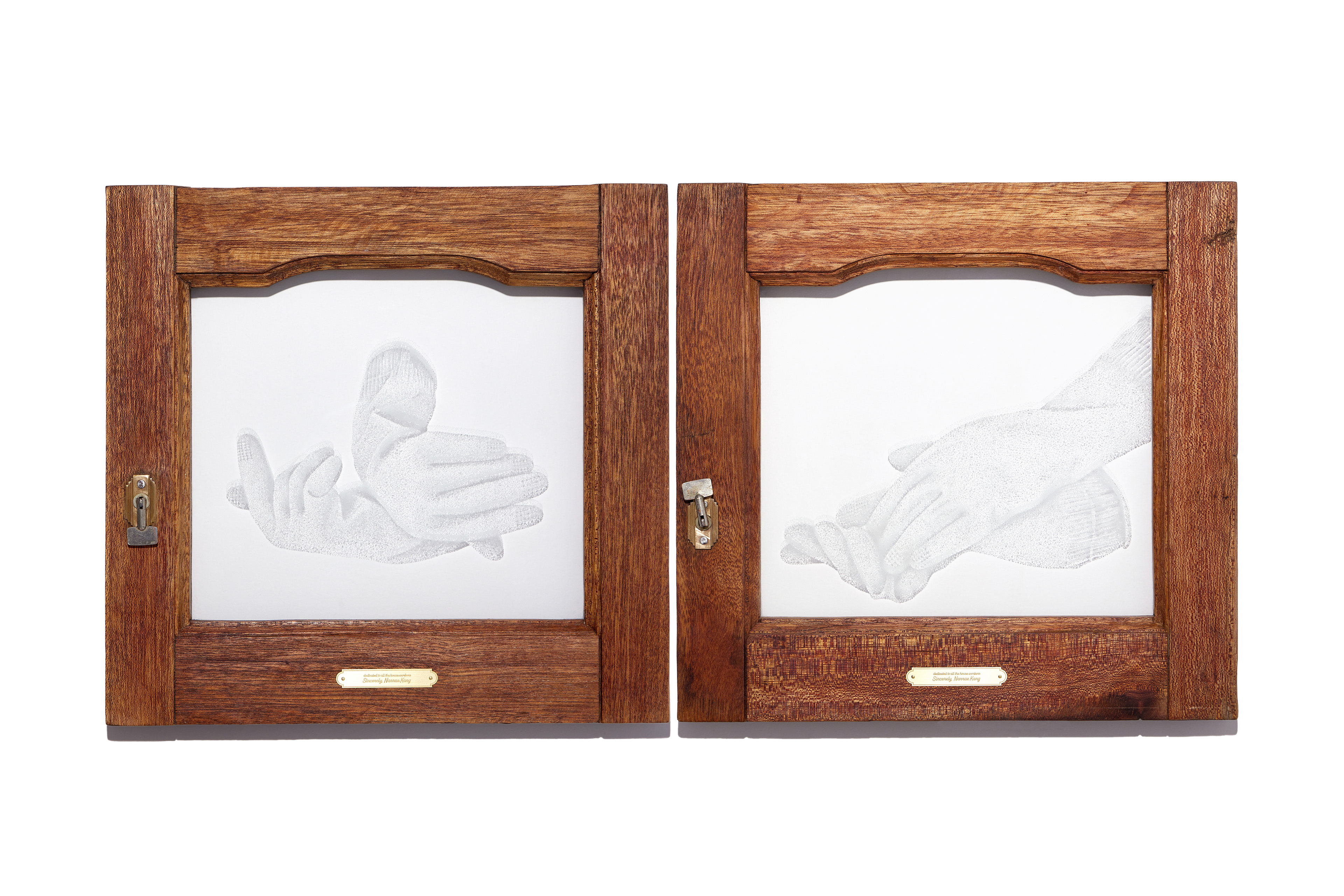 37.3×39×3cm / engraved sheet glass, wooden window frame, brass / 2023